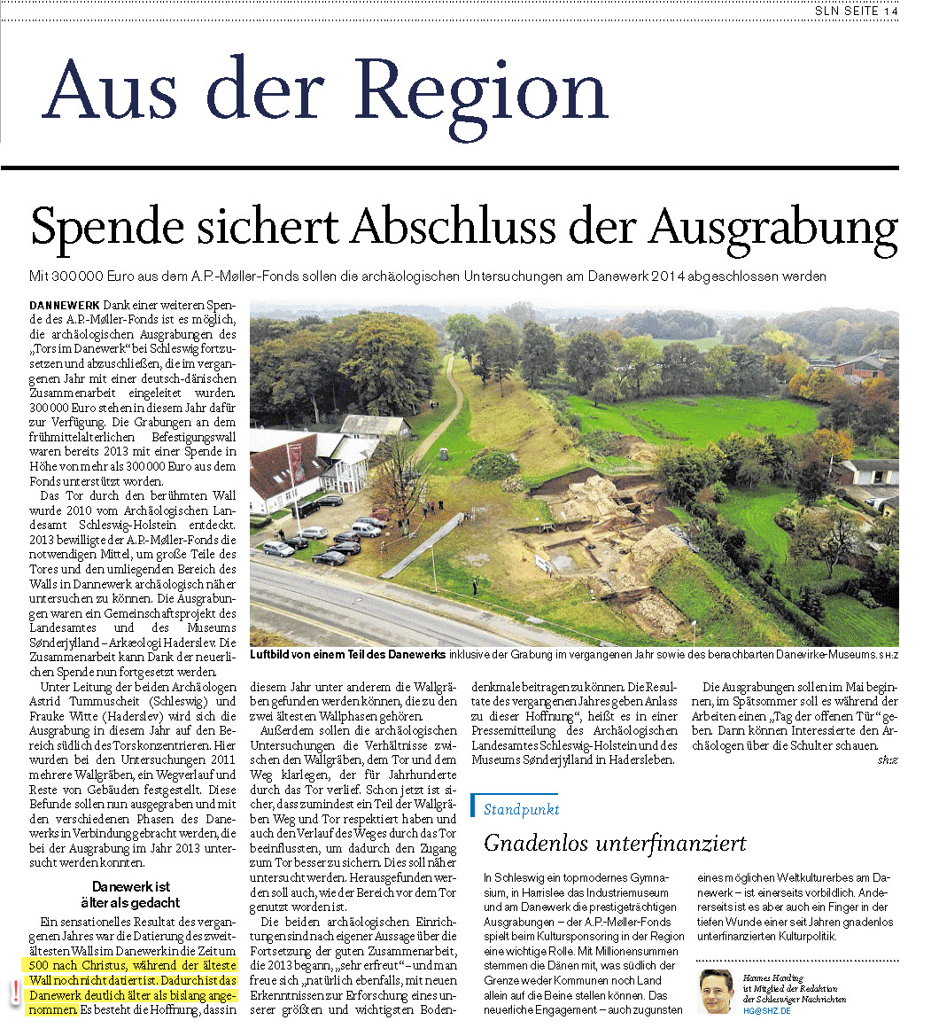 Auch wenn nur ein Regionalblatt darüber berichtete (unten zu sehen), wirft diese Tatsache natürlich die fundamentale Frage auf, wofür dieser angebliche Verteidigungswall hätte dienen können, ohne das neu gegründete dänische Königreich, für welches dieses angebliche Bollwerk ja zur Abwehr der kriegerischen Franken errichtet wurde (den Zeitungsbericht über diese archäologisch gesicherte Erkenntnis findest du unten). Fakt ist auf jeden Fall: Dieses Bauwerk hatte seinen Ursprung bewiesenermaßen NICHT in der Wikinger-Zeit (793-1066 n.Ch.).