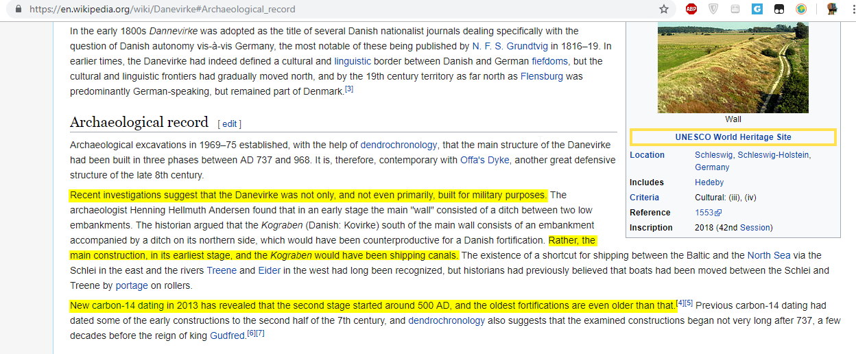 Diesen Satz sollte jeder Interessierte einmal auf sich wirken lassen. Spätestens jetzt sollte einem klar werden, weshalb die englische Wikipedia-Seite die Kernaussagen dieses Artikels als Tatsachen anpreist, nicht aber, warum man auf der deutschen Seite nicht einmal ein Wort darüber verliert (https://en.wikipedia.org/wiki/Danevirke – man beachte, die englische Wikipedia hat inzwischen den Beitrag angepasst und diese Passagen entfernt. In der Versionierung findet man sie aber noch)!