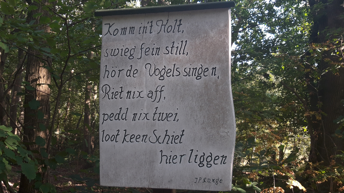Der Wald, also der Holt, bietet meiner Familie und mir Schutz auf der Ehr, die es zu bewahren und verehren gilt. Die Menschen wählten ihre Wörter bewusst. Unsere inzwischen als Plattdeutsch bezeichnete Sprache (früher hieß sie Sässisch) ist uraltes, vergessenes Kulturgut und spielt nur noch eine geringe Rolle für uns, wohl auch, weil wir nicht um diese geschichtlichen Zusammenhänge wissen.