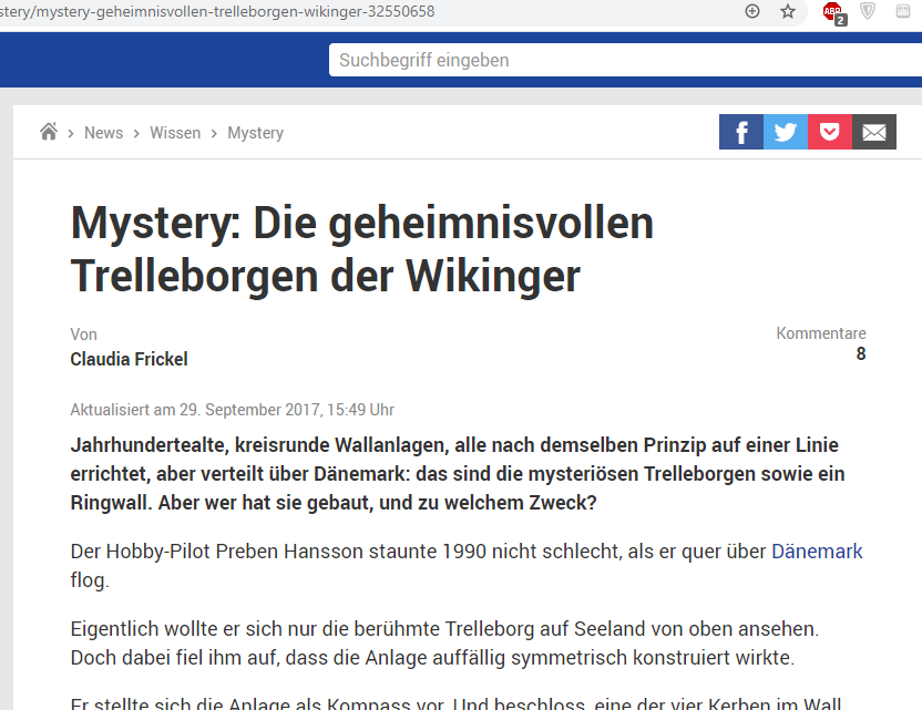 Fakt ist: Diese Anlagen und ihr immernoch bestehenden Liniennetz und die Grundrisse der Trelleborgen existieren bis heute in einer Perfektion, die sich in keine offizielle Geschichtsepoche drücken lässt; ob wir es wollen oder nicht. Freuen wir uns darüber! Egal, ob nordische Gottheiten bzw. Überlebende früherer Hochkulturen mit im Spiel waren oder nicht: In die Liste der phänomenalen Bauten weltweit, die genauso wenig zufriedenstellend erklärt werden können, wie diese Trelleborganlagen, können wir uns nun eintragen. Schade ist nur, dass wir zu diesen Themen nichts über unsere öffentlichen Medien erfahren, sondern eher zufällig, weil wir durchs Internet browsen oder, so wie ich, durch das Lesen eines in die Jahre gekommenen Buches. Nehmt alleine die kurz oben beschriebenen Hyperboreer als Beispiel: Wäre es bei einer derartig präzisen Lagebeschreibung antiker Quellen nicht mal angebracht, uns Schleswig-Holsteiner im größeren Stile darüber aufzuklären, wer die Hyperboreer waren? Es scheint leider nicht. Wer mehr wissen will, muss eben selber aktiv werden. Dies lege ich hiermit wieder jedem Leser ans Herz.Dein Jan