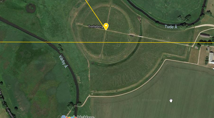 Ist das nicht ein Hammer? Wo bleibt der Aufschrei der Historiker? Wer beherrschte Geometrie, Mathematik, Architektur und Technik auf einem derart hohem Niveau und das weit vor, vielleicht sogar sehr weit vor dem Mittelalter? Wenn ich nicht selber die Linien eingezeichnet hätte, hätte ich es selbst nicht geglaubt, was ich hier sehe! Die Anlagen liegen sogar noch auf denselben Linien! Selbst die Anlagen, auf die Hansson nicht in seinem Werk verwiesen hat, lassen sich durch eine andere, west-östlich verlaufende Linie verbinden. Wir reden hier von hunderten von Kilometern, davon teils Dutzende von Kilometer über Wasser (Slagelse auf Seeland nach Trelleborg in Schweden)! Nur eine Trelleborg-Anlage war nicht mit den anderen verbunden (Borgring Køge nahe der Stadt Køge). Wie es der Zufall aber so will, habe ich, bevor ich auf Hanssons Material gestoßen bin, vor längerer Zeit mal etwas von der sogenannten Horstlinie gehört, die durch die Orte Horstmar, Delmenhorst und Horst in Schleswig-Holstein ging und deshalb auch so heißt (https://www.allmystery.de/themen/uf37952-37). Nichtsahnend zog ich diese Linie auf der Karte weiter gen Nordosten und glaubte nicht, was ich sah: Sie verbindet die letzte freistehende Trelleborg! Wer will jetzt behaupten, dass das alles Zufall sei? Welchen Nutzen zogen unsere Vorfahren aus diesen Anlagen und der Tatsache, dass sie alle durch Linien miteinander verbunden waren bzw. bis heute sind? Tja, jetzt stehen wir vor dem Problem, dass wir mit den Informationen, die wir seit der Schule vermittelt bekommen haben, und welche sich bei den meisten von uns seither nicht grundlegend geändert haben, an dieser Stelle nicht weiter kommen. Wir müssen uns notgedrungen auf alternative Erklärungsversuche einlassen. Was bleiben uns sonst für Möglichkeiten? Was jetzt folgt ist daher lediglich Spekulation.