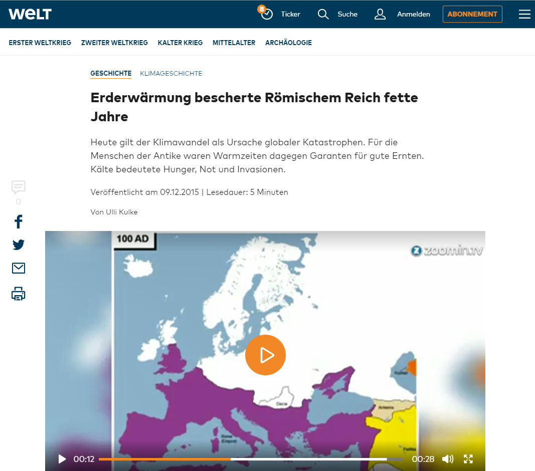Die Wahrheit ist, dass das Klima ständig im Wandel ist, das belegen auch Klimadaten des "Center for the Study of Carbon Dioxide and Global Change", welches in Grönland hierzu forschte und Eisproben analysierte. Innerhalb der letzten 4000 Jahre alleine gab es 2 Klima-Optima, in welchen es weit wärmer war als heutzutage (Quelle, CO2Science). Das letzte Klima-Optimum war das der Eisen-/Römerzeit, das im 5. Jahrhundert endete. Die klimatischen Verhältnisse waren "Voraussetzung für die Blüte des römischen Imperiums" (Quelle, die Welt)! Übrigens gibt es 800 wissenschaftliche Veröffentlichungen gegen die Co2-These (Quelle, die Welt)!