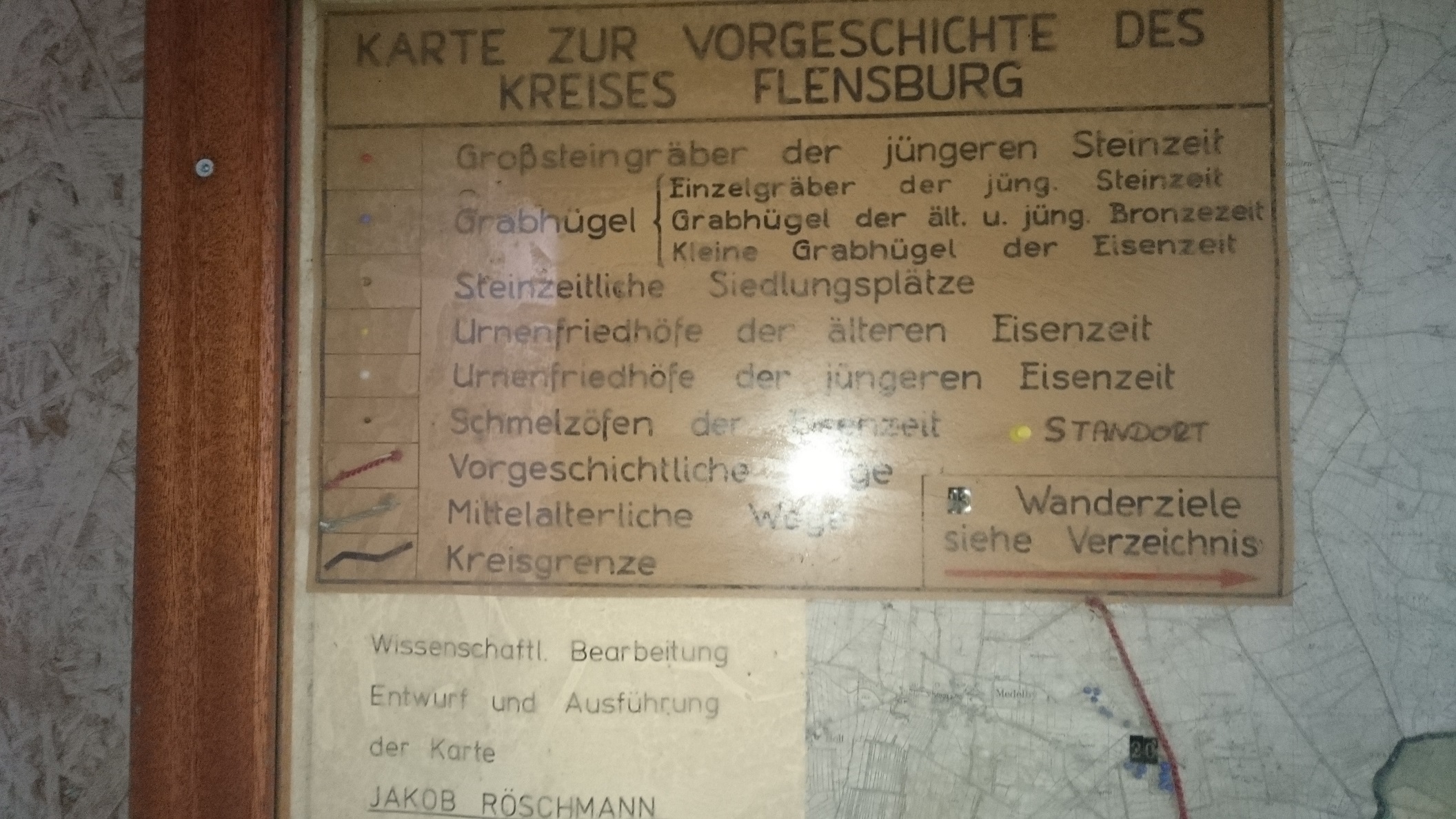 Legende der Karte zur Vorgeschichte des Kreises Flensburg – Aufgenommen im Arnkiel Park – Entwurf und Ausführung der Karte Jakob Röschmann (1963)